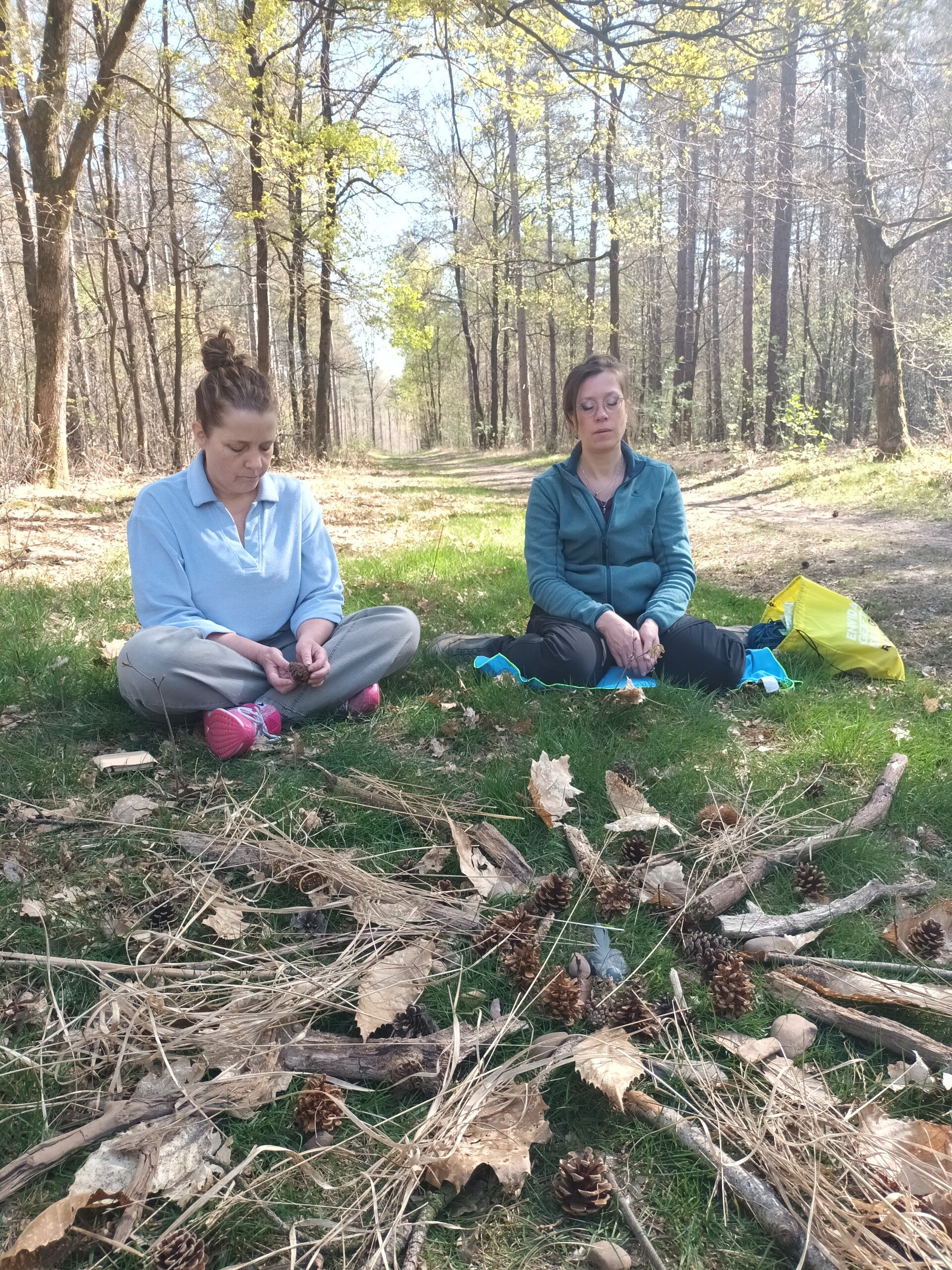 We nemen de tijd om stil te worden met een rustgevende oefening. Daarna creëren we in contact met de natuur.
